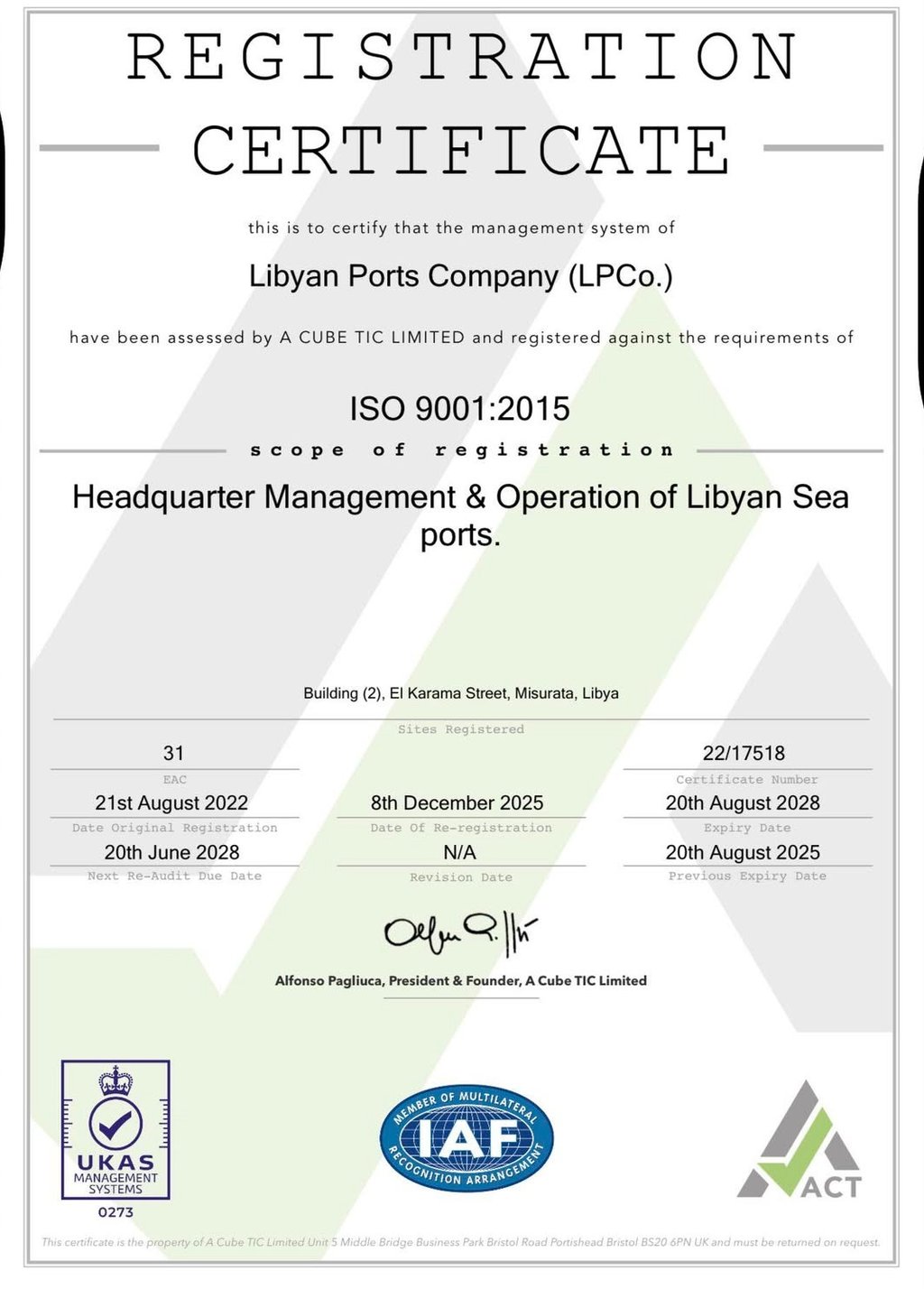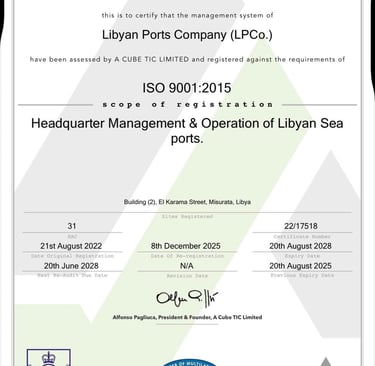 ISO9001/2015 - إدارة الشركة الليبية للموانئ تحافظ على تطبيق وفاعلية نظام إدارة الجودة