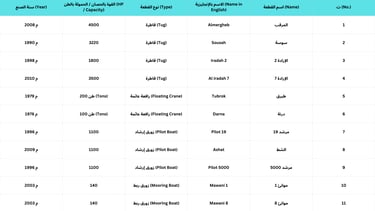 أكبر سفينة يمكن استقبالها (لاتزيد حمولتها عن 40ألف طن ولا يتجاوز غاطسها 11 متر والطول يتوافق مع المساحة لمناورة السفينة).